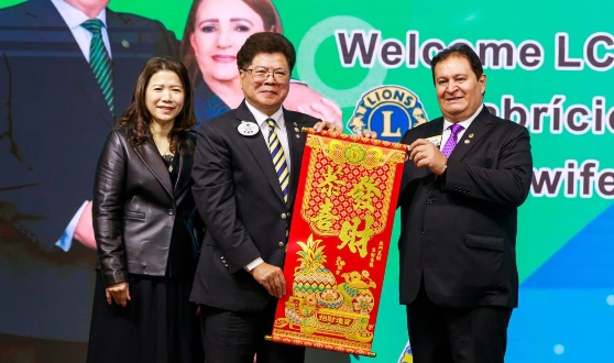 國際基金會LCIF主席法布里希奧致詞感謝A 5區總監李敏卿與獅友們對於LCIF的貢獻,並讚揚李敏卿總監捐贈救命醫療儀器設備的智慧,為需要的民眾延續生命帶來新希望。
