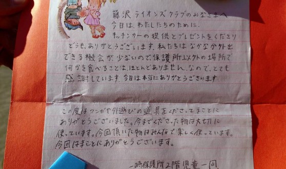 The letter shown in the photo is a message of gratitude written by one of the children at the center. Its contents are as follows.